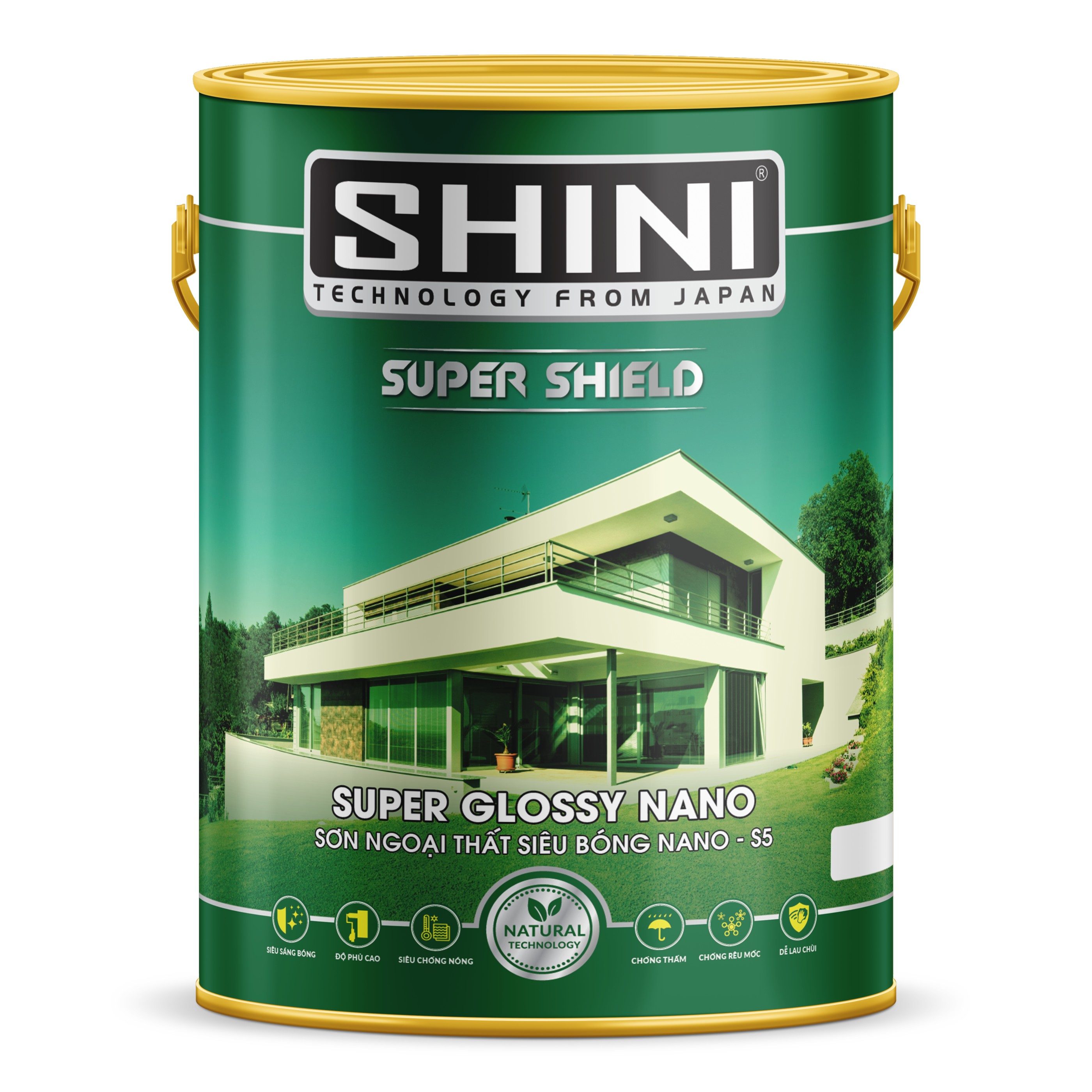 SHINI - SIÊU BÓNG NANO được ứng dụng công nghệ tiên tiến nhất hiện nay - Công nghệ NANO. Là loại sơn siêu hạng dùng để hoàn thiện bề mặt bên ngoài các công trình xây dựng có kiến trúc hiện đại, đòi hỏi về chất lượng và thẩm mỹ ở mức độ cao nhất